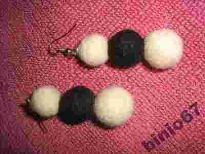 Kolczyki kule filcowe, czarno-białe