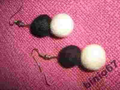 Kolczyki kulki filcowe, czarno - białe
