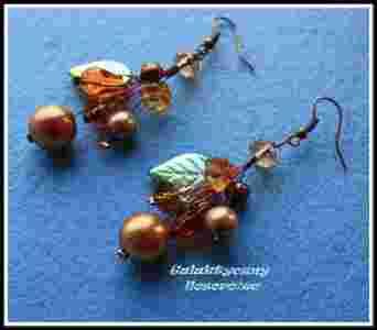 Kolczyki kwiaty brązowo - złote
