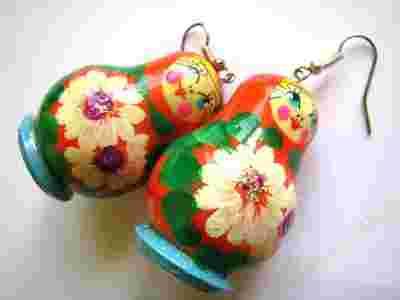 Kolczyki MATRIOSZKI wykonane przez artystę malarza z Rosji.