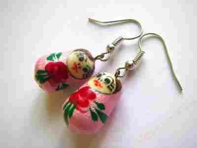 Kolczyki MATRIOSZKI wykonane przez artystę malarza z Rosji.