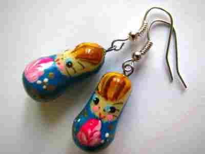 Kolczyki MATRIOSZKI wykonane przez artystę malarza z Rosji.