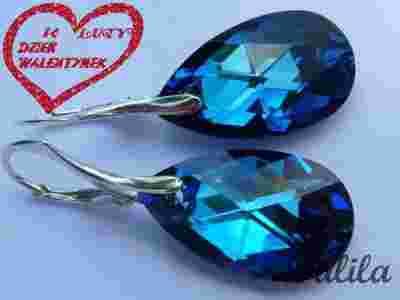 Kolczyki - migdał Swarovski bermuda blue 22 mm
