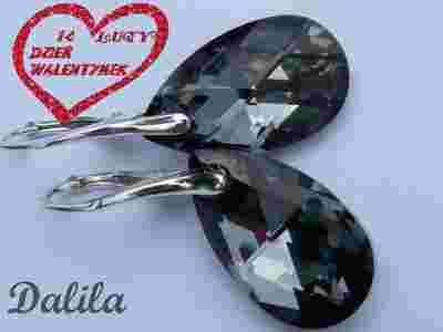 Kolczyki - migdał Swarovski silver night 22 mm