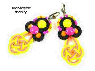 Kolczyki neonowe neon Swarovski sutasz soutache