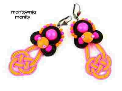 Kolczyki neonowe neon Swarovski sutasz soutache