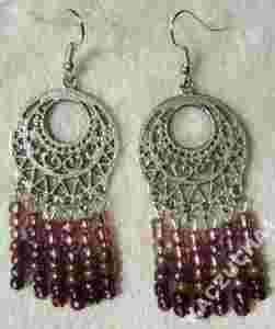 Przedmiotem aukcji są długie kolczyki z elementów posrebrzanych, antyalergicznych (w najszerszym miejscu kolczyk ma szerokość na ok. 2,7cm), jak na zdjęciu. Koraliki w kolorystyce ametystu. Bigle posrebrzane, baranki silikonowe w komplecie z kolczykami. Długość całkowita ok.7,7cm.