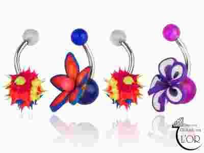 Kolczyki pępek 4 szt piercing stal kauczuk akryl