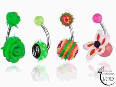 Kolczyki pępek 4 szt piercing stal kauczuk akryl