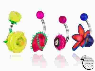 Kolczyki pępek 4 szt piercing stal kauczuk akryl