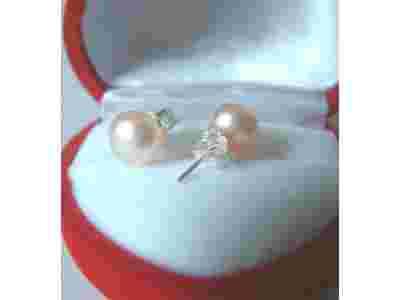 Kolczyki perły różowe 8 mm + SREBRO, sztyft