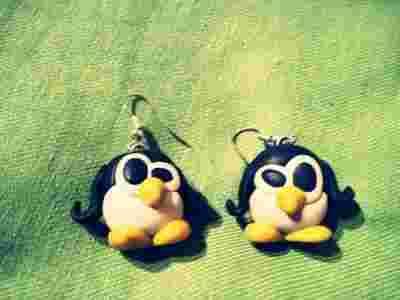 kolczyki *pingwinki* handmade - funny :) modelina!