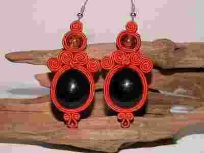 Kolczyki rudy z czarnym sutasz dwustronne