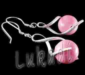 Kolczyki Srebrne Kulka na Sprężynie - Różowe