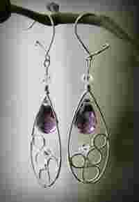 Kolczyki srebro, kryształki, wrapping, rękodzieło.