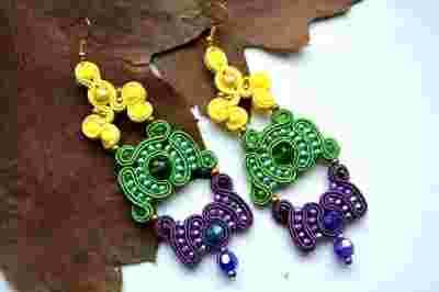 KOLCZYKI SUTASZ ŻÓŁTO ZIELONO FIOLETOWE