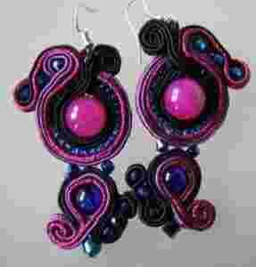 Kolczyki sutasz amarant czerń bogate soutache