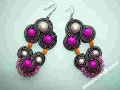 Kolczyki wykonane są z jedwabnych sznurków oraz szklanych,