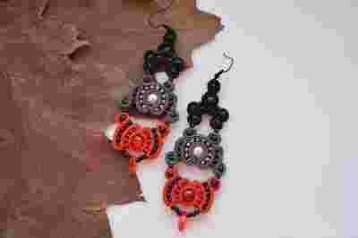 KOLCZYKI SUTASZ CZARNO SIWO CZERWONE