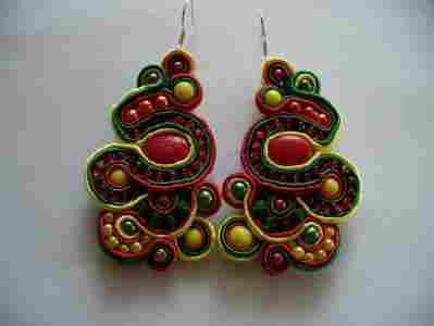 KOLCZYKI SUTASZ CZERWONO ŻÓŁTE