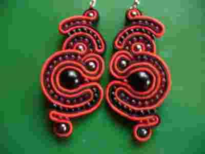 KOLCZYKI SUTASZ CZERWONO CZARNE