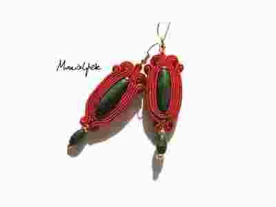 KOLCZYKI SUTASZ czerwono-zielone soutache