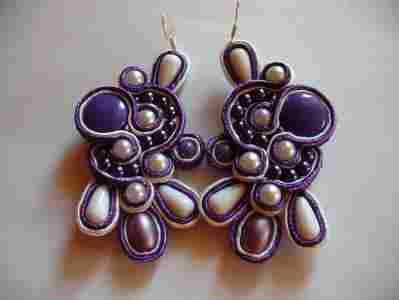 KOLCZYKI SUTASZ FIOLETOWO BIAŁE