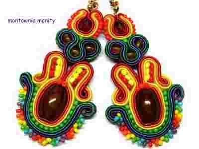 KOLCZYKI SUTASZ SOUTACHE AGAT tęczy czar
