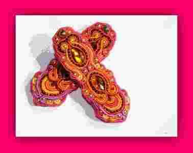 Wykonane trudną i czasochłonną techniką haftu soutache.