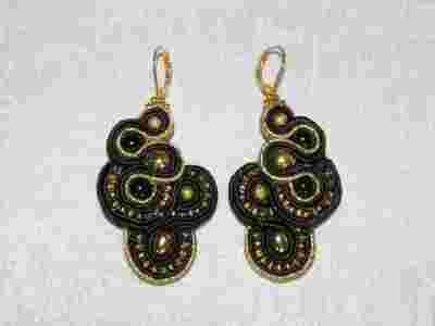Kolczyki sutasz, soutache, czarno - złote, śliczne