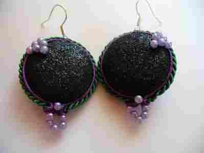 KOLCZYKI SUTASZ SOUTACHE CZARNO ZIELONE