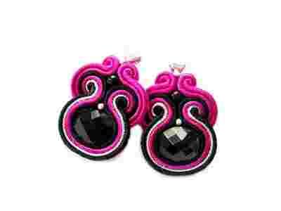 Kolczyki Sutasz Soutache czerń i fuksja sztyfty