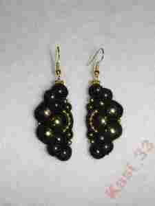 Kolczyki sutasz, soutache, czerń, złoto, gratis!