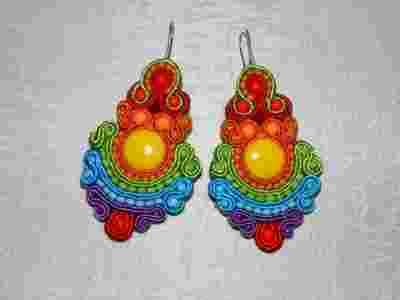 Kolczyki sutasz_soutache, długie, tęczowe, SREBRO!