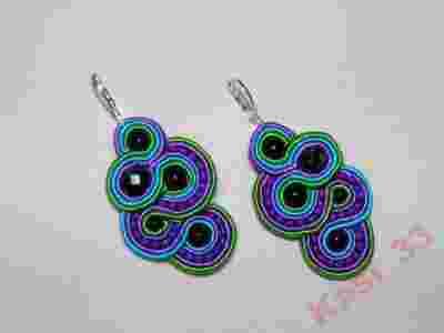Kolczyki sutasz, soutache, fiolet -błękit- zieleń