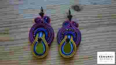 Kolczyki sutasz soutache fiolet niebieski żółty