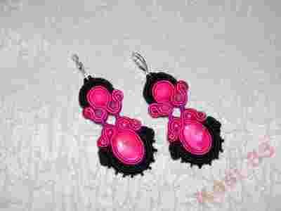 Kolczyki sutasz, soutache, fuksja -czarny, śliczne