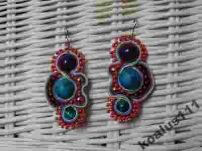 Kolczyki sutasz, soutache kamienie 6 cm HIT roku!