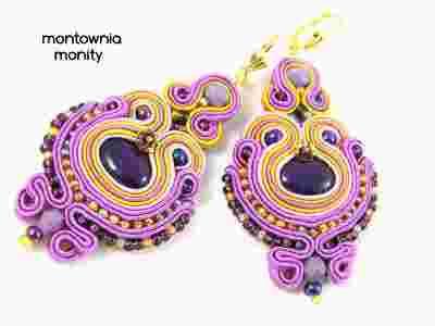 KOLCZYKI SUTASZ SOUTACHE marmur fioletowe miodowe