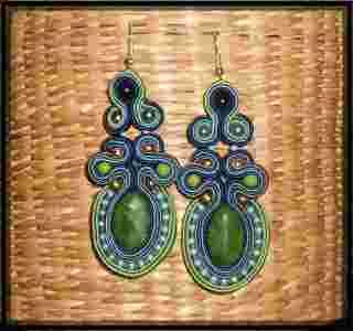 KOLCZYKI SUTASZ SOUTACHE turkus zielony *karnawał*