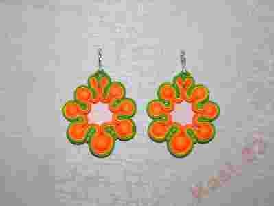 Kolczyki sutasz, soutache, zieleń -pomarańcz- neon
