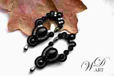 KOLCZYKI SUTASZ Z HEMATYTAMI CZARNE ZE SREBREM