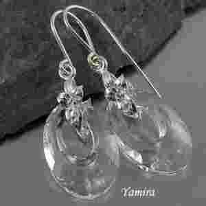 Eleganckie, klasyczne kolczyki ze srebra z kryształkami Swarovskiego helios (20mm) i pięknie zdobionymi krawatkami ze srebra pr. 925. Długość całkowita z biglami 4,1cm. Śliczny, delikatny dodatek. Biżuteria będzie wysłana w firmowym, ozdobnym opakowaniu.