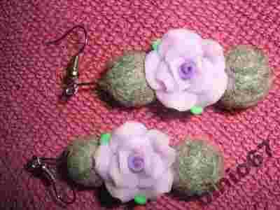 Kolczyki szare filcowe kule, fioletowy kwiatek