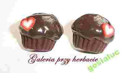 Kolczyki sztyfty babeczki z serduszkiem fimo