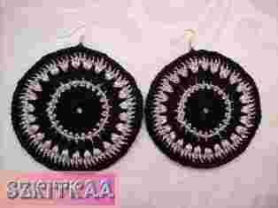 Kolczyki szydełkowe - CZARNO SREBRNE - 8 cm