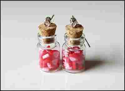 kolczyki truskawki z modeliny fimo, słoik, owoce