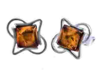 KOLCZYKI WKRĘTY KWADRACIK Z BURSZTYNEM SREBRO