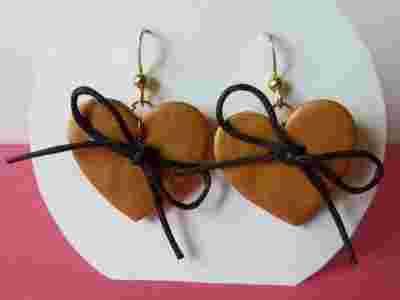 Kolczyki złote serduszka z kokardką handmade