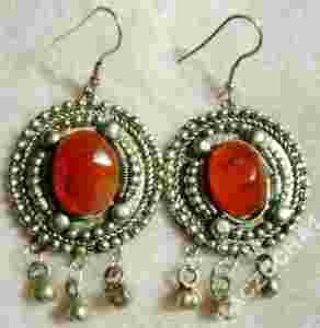 Przedmiotem aukcji są kolczyki widoczne na zdjęciu. Wykonane w stylu orientalnym, z naturalnym agatem. Bigle posrebrzane, baranki silikonowe w komplecie z kolczykami. Elementy metalowe również w kolorze srebra. Długość całkowita ok. 7cm, szerokosć 3cm.